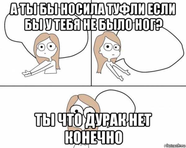 а ты бы носила туфли если бы у тебя не было ног? ты что дурак нет конечно Мем не надо так (мем)