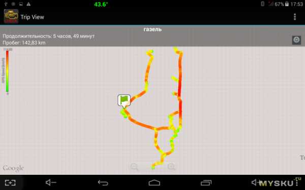 «Обзор на карте» — позволяет (при включенном GPS) записывать трек отдельных поездок (при выключении зажигания не обнуляется):