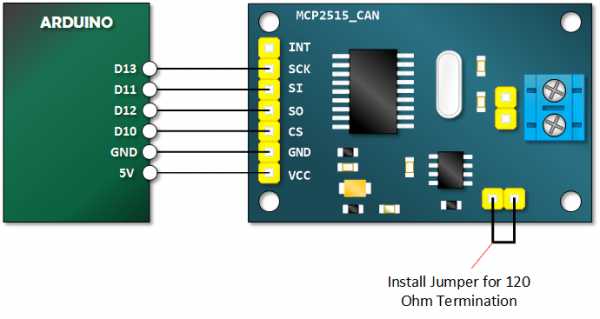 CAN контроллер MCP2515 предлагает дополнительные функциональные возможности, включая более высокую производительность, эффективную фильтрацию данных, имеет выход начала фрейма и использует интерфейс SPI, который позволяет легко подключить любой микроконтроллер.