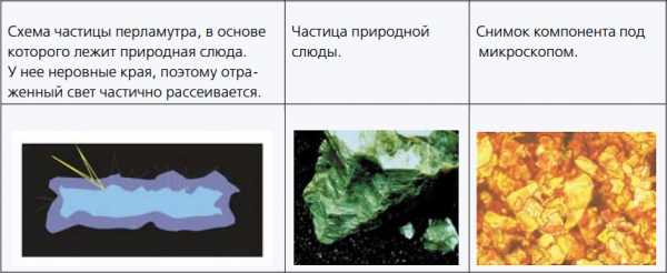 На самом деле основным сырьем для промышленного производства перламутров является природная слюда (минерал мусковит). Это так называемые «минеральные перламутры».