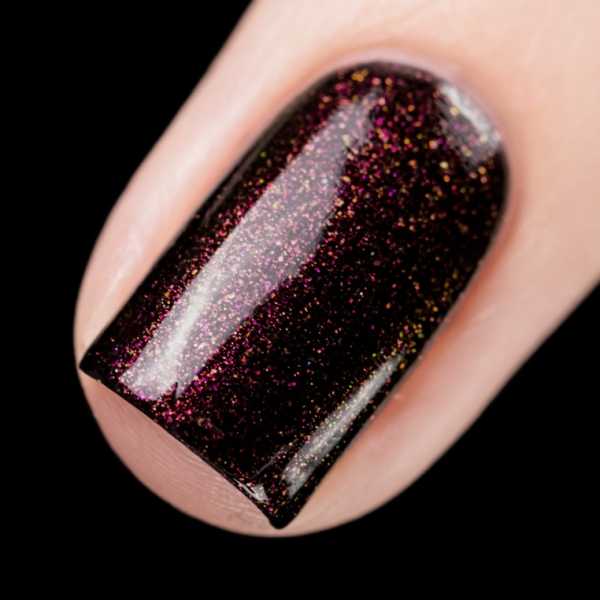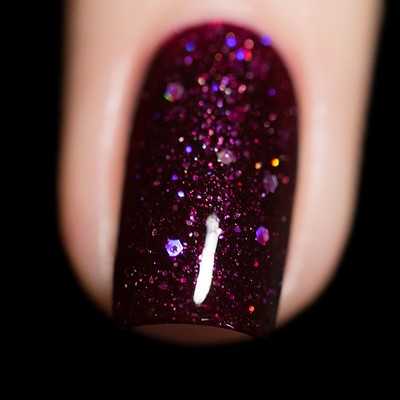 Голографическая крошка – «рваные» частицы, дающие голографический отсвет. Они могут быть разного размера, но чаще всего хорошо видны невооруженным глазом. Когда они присутствуют в высокой концентрации, лак принято называть рассеянным голографиком. А в небольшом количестве они добавляют лаку немного таинственного мерцания.