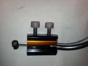— Приспособление для смазки тросов. Отсоединяем трос с обоих сторон от мотоцикла, вкладываем один конец в паз приспособления, закручиваем барашки, через отверстие, с помощью шприца или носика баллончика промывается и смазывается трос.
