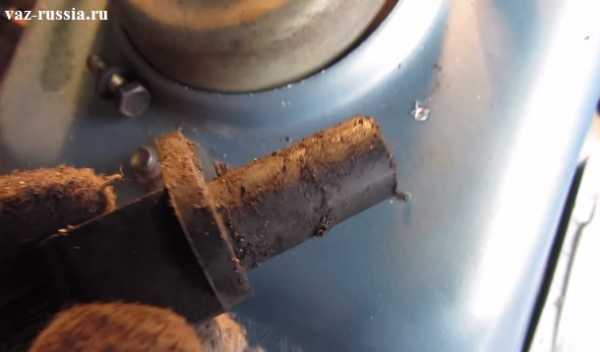 Помните чуть ранее мы вам сказали что датчик можно починить? Так вот мы имели ввиду то что его почистить можно, он располагается в нижней части автомобиля и поэтому грязь из под впереди едущих машин на него (Хоть и немного) но всё же попадает, и если загрязниться магнитопроводящий сердечник то датчик уже не будет правильно считывать показания, для примера ниже на фото показан испачканный весь датчик, к сожалению ракурс не позволяет увидеть сердечник а только корпус можно увидеть, но сердечник на данном датчике тоже очень сильно загрязнён!