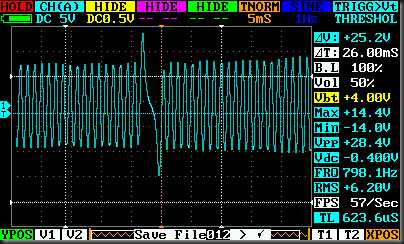 Если соединить выходной сигнал датчика к осциллографу мы увидим вот такую картину: