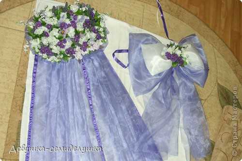 Так как в свадебных агентствах нам не удалось найти украшения нужной цветовой гаммы, пришлось шить и изготавливать самим.