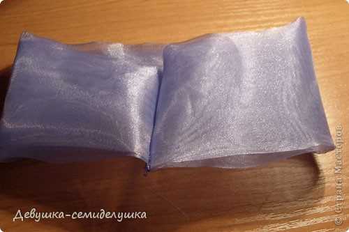 И, как и сиреневую органзу, складываем вчетверо. Затем деталь сшиваем.