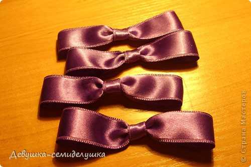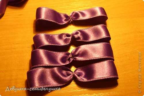 Из атласной ленты сшиваем и стягиваем середины внутренних бантиков.