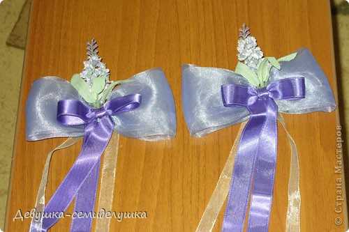 Остается приклеить цветок ( в нашем случае — лаванду) и приготовленный атласный бантик.