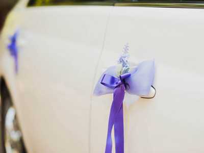 Делаем банты на ручки авто. Органза сложена вчетверо.