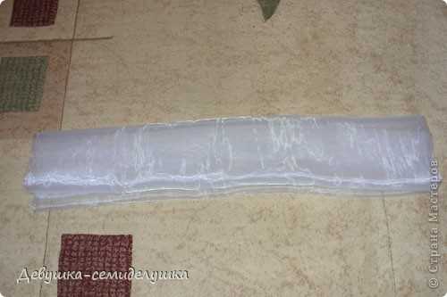 Сам процесс:Из органзы шириной 150 см выкраиваем 2 детали такой же шириной.