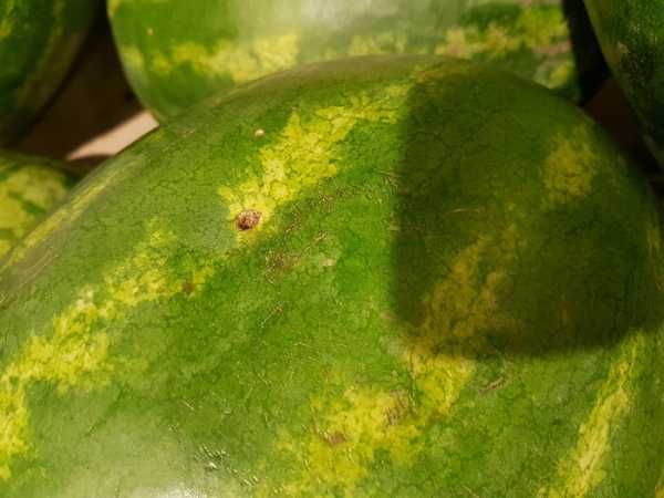 Осматривайте плод очень внимательно. На нем не должно присутствовать вмятин, трещинок, прогнивших мест. У неспелых арбузов кожица тусклая.