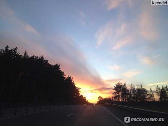 Если до этого приходилось путешествовать по трассе М1, то к этому участку можно придраться, но в целом я бы поставила ему 4. И балл снят за объездную трассу Рязани. Во всем остальном к дороге претензий нет. На этом участке есть по 2 полосы движения в каждом направлении. Ограничение скорости – 90 км/ч. Ближе к Москве на трассе везде есть разделительный отбойник. На фото этот участок из нашей обратной дороги в Мосвку (в свете заката фото показалось нам лучше).
