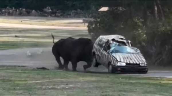 То, что случилось в природном парке Серенгети в немецкой Нижней Саксонии, даже аварией назвать трудно – скорее, это нападение на автомобиль. По данным издания Bild, одному из обитателей парка, носорогу по кличке Кузини (по-нашему Кузя, стало быть), не понравилось, что его пытаются загнать в стойло.