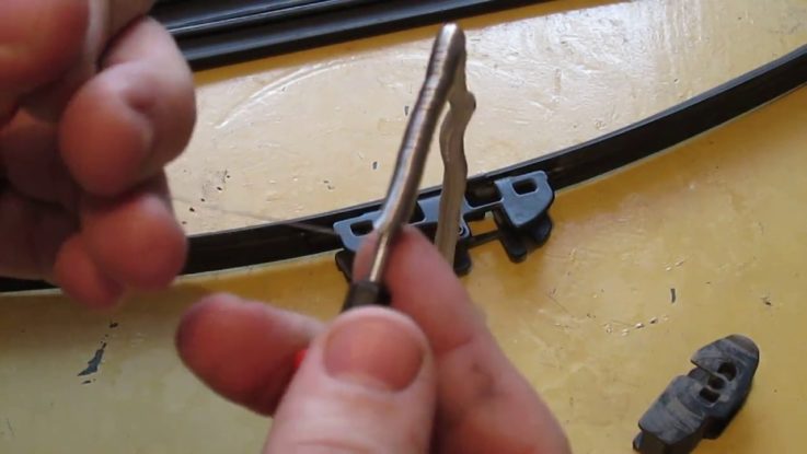 Потому снимать дворники лучше согласно инструкции от производителя. Демонтировав элементы, их следует разобрать для последующей установки нагревателя. Если это бескаркасные модели, разборка выглядит примерно так: