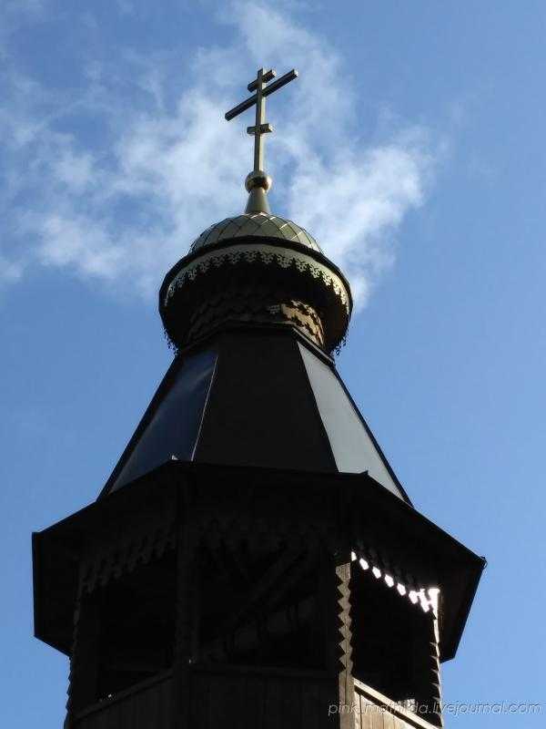 Пожалуй, из всех увиденных за время экскурсии храмов этот поразил меня больше всего. Я даже не поверила, что он построен в наши дни — в данном случае слова о том, что строился ансамбль в традициях русского деревянного зодчества XVII–XVIII веков, это не просто слова. К тому же приятно радует ухоженная территория храма. В таком месте как-то легко забываешь о мирских суетах и задумываешься о духовном.