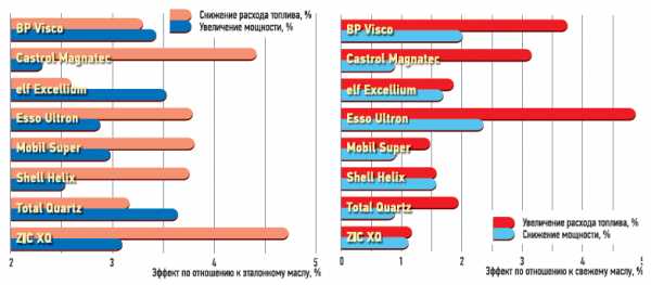 2. (Схема справа) а вот так ухудшились показатели экономичности и мощности моторов, когда масла «постарели». Тут база для каждого масла — такое же, только свежее. Скажете, 4,5% роста расхода топлива — немного? Но учтите цены на топливо в Сибири и на Дальнем Востоке.Материалы по теме