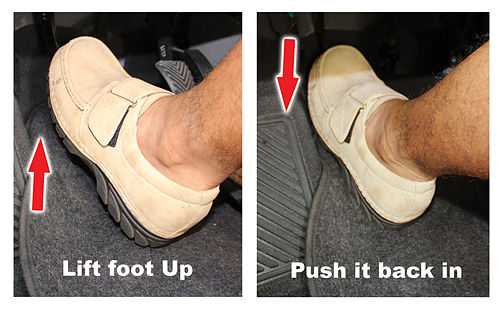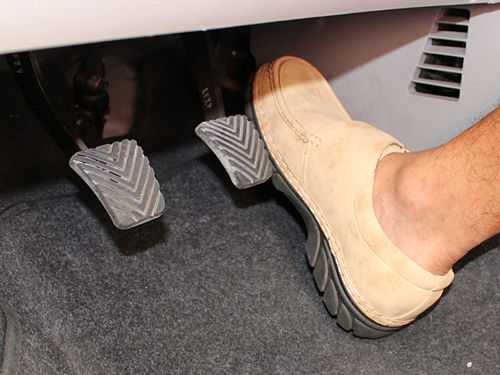 Начинающий водитель должен запомнить, что при управлении автомобилем, оборудованным МКПП, правая нога переносится с педали газа на педаль тормоза и наоборот, а левая работает только с педалью сцепления. Исключением является применение спортивных техник управления, когда торможение может быть выполнено профессионалом левой ногой.