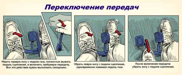 Вывод: после успешного перехода на выбранную передачу (или включения нейтрального положения), уберите левую ногу с педали сцепления.