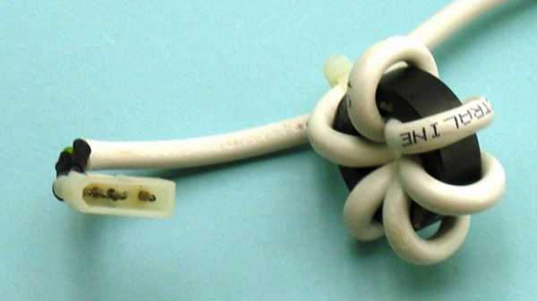 Удивительно, но внутри этого бочонка нет никаких микросхем или других электронных устройств. Если его вскрыть и посмотреть на внутренности, то ничего интересного там не увидишь. Просто шнур проходит сквозь небольшой полый цилиндр из твердого материала. В некоторых случаях шнур охватывает его петлей.