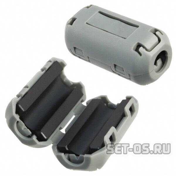 Данный материал образуется из химического соединения оксидов железа с оксидами других металлов. Он обладает уникальными магнитными характеристиками и низкой электропроводностью. Благодаря этому ферриты практически не имеют конкурентов среди иных магнитных материалов в высокочастотной технике. Ферритовые кольца 2000нм значительно увеличивают индуктивность кабеля (в несколько сотен или тысяч раз), что обеспечивает подавление высокочастотных помех. Данный элемент устанавливается на шнур при его производстве либо, разрезанный на две полуокружности, надевается на провод сразу после его изготовления. Ферритовый фильтр упаковывается в пластиковый корпус. Если его разрезать, то можно увидеть внутри кусок металла.