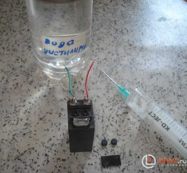 С него и начал проверку. Напряжение на клеммах вольтметр показал равным одному вольту. Имея уже некоторый опыт общения с такими аккумуляторами начал с того, что открыл на нём верхнюю предохранительную планку, снял резиновые колпачки, долил в каждую «банку» по одному кубику дистиллированной воды и поставил на зарядку. Зарядное напряжение 12 В, ток 50 мА.