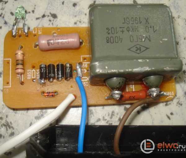 Составленная схема показала свою работоспособность, конденсатор ёмкостью в 1 мкФ и 400 В нашёл МБГО (куда ещё надёжней и в предполагаемый корпус вписывается удачно), диодный мост собран из 4 штук диодов 1N4007, стабилитрон на пробу взял первый попавшийся импортный (напряжение стабилизации определил приставкой к мультиметру, а вот название его прочитать не представилось возможным).