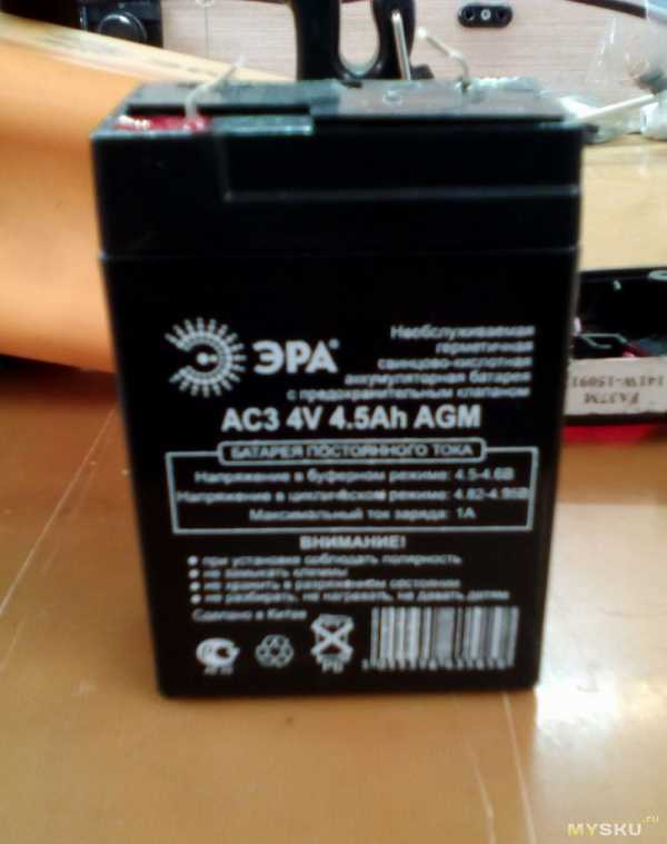Сердцем фонаря является свинцовая (AGM) аккумуляторная батарея емкостью до 4.5Ач.