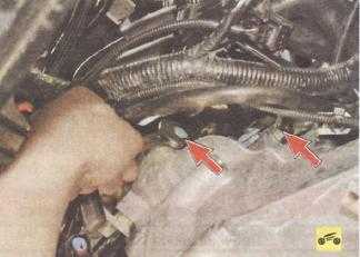 Стартер установлен на картере сцепления с задней стороны силового агрегата. Вам потребуются: ключ «на 13», торцовые головки «на 10» и «на 13». 1. Отсоедините провод от клеммы «минус» аккумуляторной батареи.