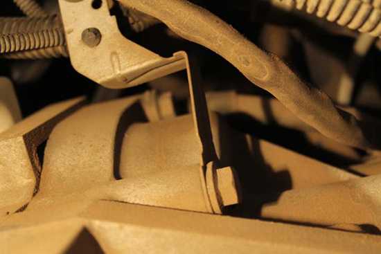 Таким образом у вас образуется доступ к двум верхним болтам крепления стартера. Возьмите ключ TORX (звездочка) и открутите контрольный щуп проверки уровня масла в двигателе. Это необходимо для того чтобы обеспечить доступ к гайкам крепления стартера.