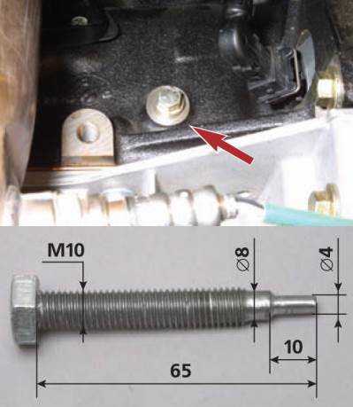 1.8 литровый 16 клапанный движок, как и его 2-литровая модификация имеют ремень в приводе ГРМ. Замену ремня необходимо проводить раз в 60 000 км пробега. В случае обрыва ремня гнет клапана! Имейте это в виду. К сожалению никаких меток на шкивах распредвалов вы не найдете. При замене ремня необходимо совместить метку ВМТ коленвала и зафиксировать шкивы распредвала от проворачивания. Для этого имеются специальные прорези в торцах распределительных валов, которые должны быть параллельны привалочной плоскости головки блока цилиндров. Необходимо подобрать подходящую пластину и вставить в прорези распредвалов, тем самым получится зафиксировать распредвалы от проворачивания. Что бы не проворачивался коленвал необходимо будет вкрутить специальный болт в технологическое отверстие блока цилиндров со стороны радиатора. После полной фиксации можно будет приступать к замене ремня ГРМ Форд Фокус 1 1.8 литра. Размеры болта для фиксации коленвала далее на фото.