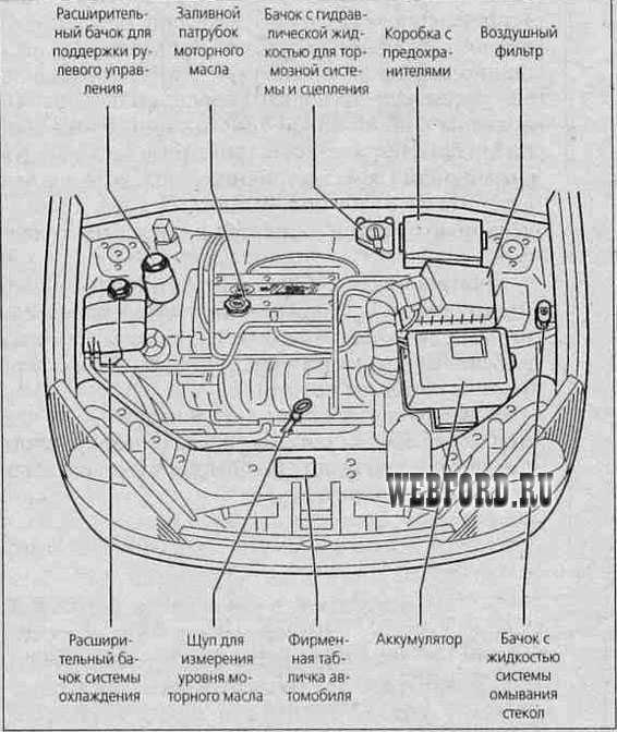 Двигательный отсек Zetec-SE 16V с рабочим объёмом 1,4/1,6 л.