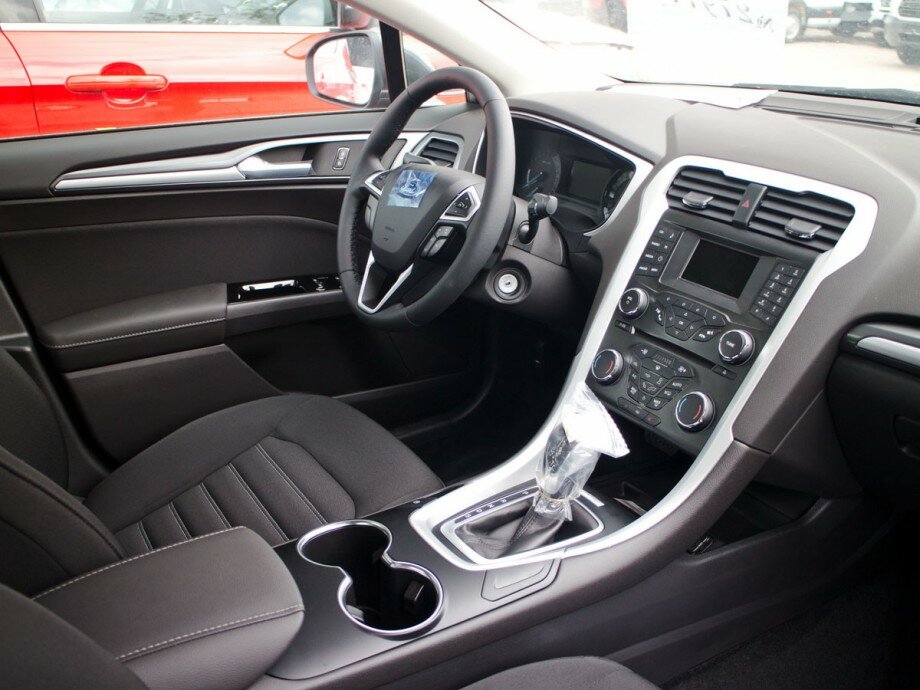 В ключе американского близнеца преобразился и салон. Первое, что бросается в глаза: вместо традиционного рычага «автомата» появилась вращающаяся шайба, как у автомобилей Jaguar или Land Rover, хотя в недра центрального тоннеля при выключении зажигания она у Форда не погружается. Для шайбы перекомпонован центральный тоннель, подстаканники теперь расположены удобнее, а подлокотник и бокс под ним стали больше.