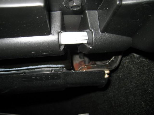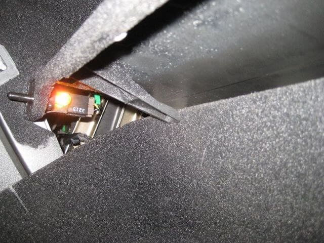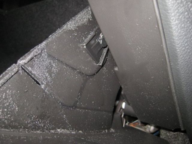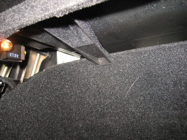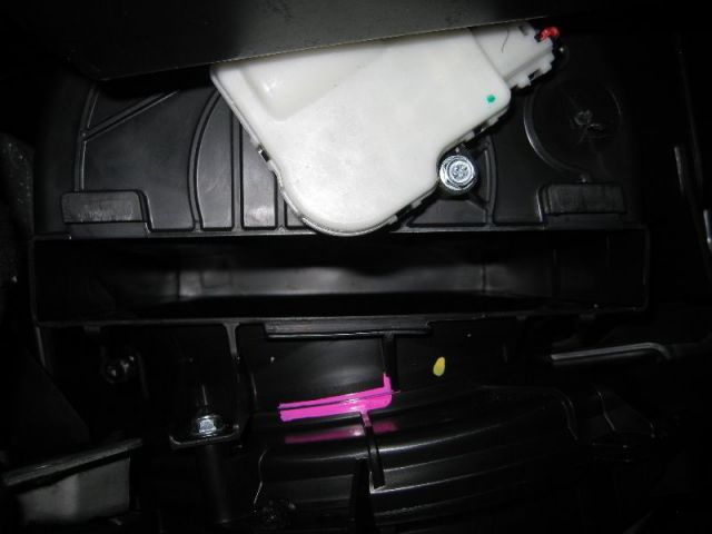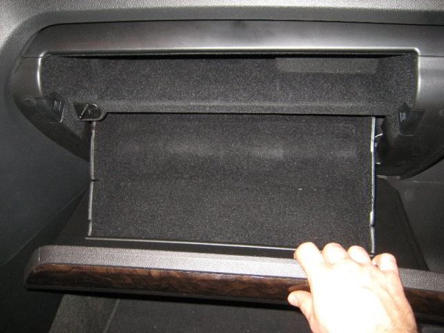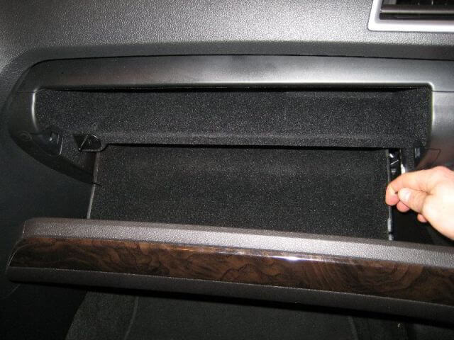 Cначала надо убрать полку бардачка. Для этого надо потянуть справа фиксатор, выводя его из зацепления. Теперь бардачок удерживают два пластиковых держателя. Их можно отогнуть и опустить полку бардачка вниз.