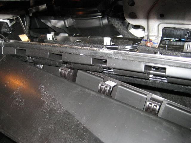 Теперь можно уже добраться к салонному фильтру, но чтобы было удобнее, можно снять бардачок с петель. При этом нужно соблюдать осторожность, чтобы не повредить хрупкие детали.
