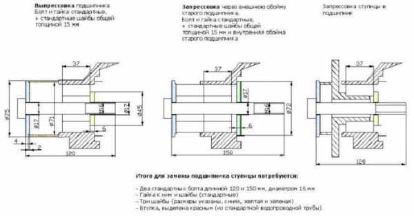 ΠΠ΅ΡΠ²ΡΠΌ Π΄Π΅Π»ΠΎΠΌ ΠΈΠ·Π²Π»Π΅ΠΊΠ°Π΅ΡΠ΅ Π½Π΅ΠΏΠΎΡΡΠ΅Π΄ΡΡΠ²Π΅Π½Π½ΠΎ ΡΡΡΠΏΠΈΡΡ, Π² ΠΊΠΎΡΠΎΡΠΎΠΉ ΠΏΡΠΎΠ΄Π΅Π»Π°Π½Ρ ΠΎΡΠ²Π΅ΡΡΡΠΈΡ Π΄Π»Ρ ΠΊΡΠ΅ΠΏΠ»Π΅Π½ΠΈΡ ΠΊΠΎΠ»Π΅Ρ. ΠΠ°Π»Π΅Π΅ Π½Π΅ΠΎΠ±Ρ ΠΎΠ΄ΠΈΠΌΠΎ ΠΏΡΠΈ ΠΏΠΎΠΌΠΎΡΠΈ ΡΠΈΠΏΡΠΎΠ² ΠΈΠ·Π²Π»Π΅ΡΡ ΡΡΠΎΠΏΠΎΡΠ½ΡΠ΅ ΠΊΠΎΠ»ΡΡΠ°. ΠΡΠ»ΠΈ Π½Π΅Ρ ΠΈΠ½ΡΡΡΡΠΌΠ΅Π½ΡΠ° ΡΠ°ΠΊΠΎΠ³ΠΎ, ΡΠΎ ΠΌΠΎΠΆΠ½ΠΎ Π²ΠΎΡΠΏΠΎΠ»ΡΠ·ΠΎΠ²Π°ΡΡΡΡ ΠΏΠ»ΠΎΡΠΊΠΎΠΉ ΠΎΡΠ²Π΅ΡΡΠΊΠΎΠΉ, ΠΏΠ»ΠΎΡΠΊΠΎΠ³ΡΠ±ΡΠ°ΠΌΠΈ ΠΈ ΡΠΈΠ»ΠΎΠΌ. ΠΠΎΡΠ»Π΅ ΠΈΠ·Π²Π»Π΅ΡΠ΅Π½ΠΈΡ ΠΊΠΎΠ»Π΅Ρ ΠΌΠΎΠΆΠ½ΠΎ ΠΏΡΠΈΡΡΡΠΏΠ°ΡΡ ΠΊ Π²ΡΠΏΡΠ΅ΡΡΠΎΠ²ΠΊΠ΅ ΠΏΠΎΠ΄ΡΠΈΠΏΠ½ΠΈΠΊΠ°. ΠΡΠ»ΠΈ Π΄Π΅Π»Π°Π΅ΡΠ΅ ΡΡΠΎ ΠΌΠΎΠ»ΠΎΡΠΊΠΎΠΌ, ΡΠΎ ΡΡΠ°ΡΠ°ΠΉΡΠ΅ΡΡ Π±ΠΈΡΡ ΡΠΎΡΠ½ΠΎ ΠΈ ΡΠ΅Π·ΠΊΠΎ, ΡΠ°ΠΊ ΠΏΠΎΠ΄ΡΠΈΠΏΠ½ΠΈΠΊ Π±ΡΡΡΡΠ΅Π΅ Π²ΡΠΉΠ΄Π΅Ρ.