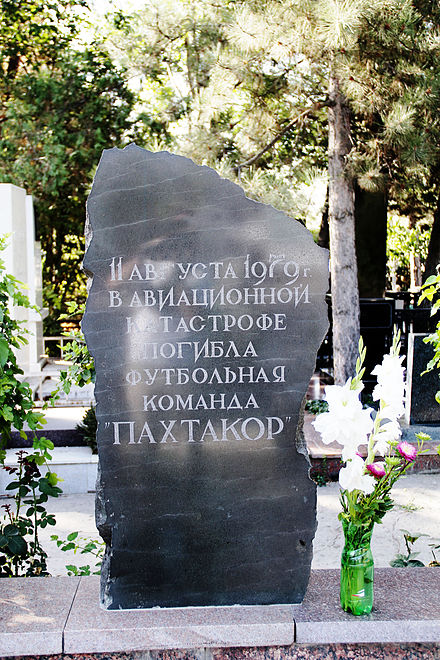 В конце 70-х годов произошла одна из самых страшных спортивных трагедий в истории советского футбола. Ташкентский «Пахтакор», летевший на матч в Минске, попал в авиакатастрофу, которая стала одной из крупнейших в истории страны. В небе над Днепродзержинском столкнулись два самолета — никто из пассажиров обоих самолетов не выжил. Среди погибших 178 человек — 17 членов «Пахтакора». В связи с тем, что коллектив пользовался популярностью в стране, промолчать о трагедии не удалось.Всех членов футбольной команды похоронили в Ташкенте на Боткинском кладбище города, где им установлен памятник. А сам «Пахтакор» по прописанному в правилах правилу в течение трех лет удерживал свое место в элитном дивизионе СССР.