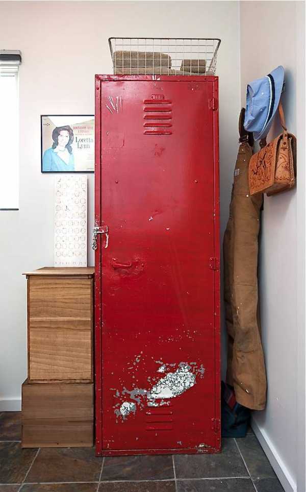 Красный шкафчик в углу когда-то принадлежал United Airlines — в нем хранилось пожарное оборудование. Мишель нашла его на распродаже в интернете.