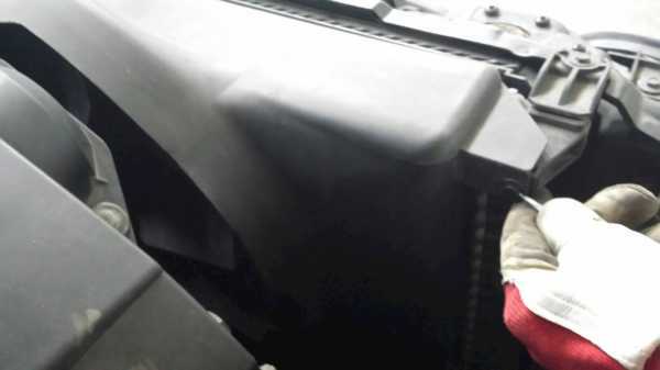Открываем капот и снимаем резиновую полоску на кожухе вентилятора.