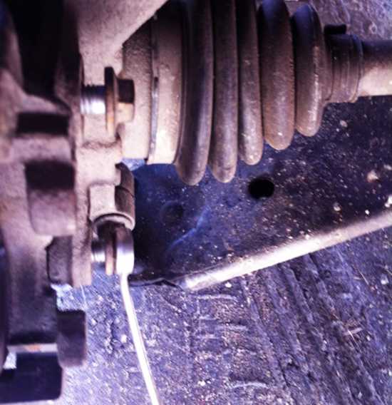 6. Аккуратно снимаем верхнюю часть тормозного суппорта и подвешиваем его на проволоку таким образом, чтобы он не мешал работать.