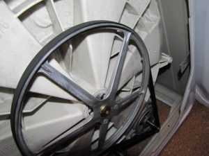 Ремень выступает немаловажным элементом, ответственным за вращение барабана. Он размещен на шкиве электромотора агрегата, а шкив закреплен на барабане. При запуске электродвигателя посредством ремня вращения передаются на барабан, благодаря чему и производится стирка.