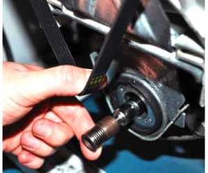 Если ременное натяжение регулируется болтом, то следует выбрать ключ подходящего размера, после этого поверните его в одну из сторон. Обратите внимание — данный болт не нужно выкручивать до конца! Ремень должен ослабнуть сразу после того, как болт повернется. Нужно продолжать данную процедуру до тех пор, пока не удастся снять ремень без особого труда.