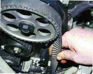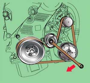 Перед установкой нового следует посмотреть на схему положения ремня между шкивами. Для установки его вначале накидывается на все шкивы, после отжимается натяжитель и на его ролик заводится ремень, после чего натяжитель отпускается.
