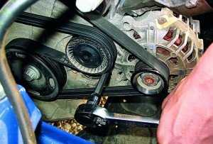 У этого авто ремень заменить довольно просто. Понадобятся только ключ на 17, а также монтировка.