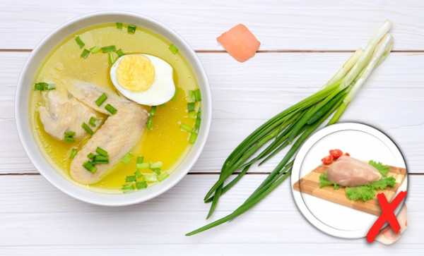 Не рекомендуется для варки брать куриную грудку – бульон из нее будет практически безвкусным, а мясо получится сухим