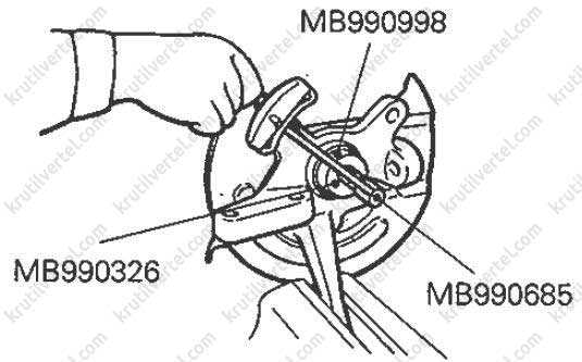 1. С помощью специального приспособления зафиксировать ступицу на поворотном кулаке.