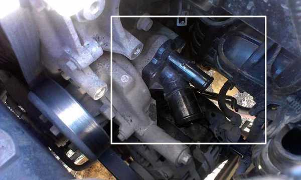 Термостат находится в пластиковом корпусе, который расположен в передней части блока цилиндров под генератором.