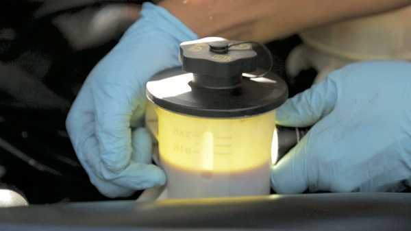 Наличие коричневой или черной жидкости указывает на загрязнение. Это могут быть частички резины, оставляемые соединительными шлангами, уплотнителями, кольцами. Автомобиль необходимо показать механику, выявляющего детали, которые нужно заменить одновременно с жидкостью.