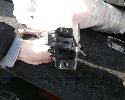 Намечаем место где будет крепится локер обрезаем тягу с запасом примерно в сантиметр загибаем этот сантиметр заводим её в замок проверяем не закусывает ли её обратите внимание на то чтобы язычок после открытия свободно возвращался в крайнее положение (фото №2 как должно быть) иначе после установки багажник не будет захлопываться.