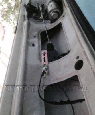 Чтобы автоматизировать открытие багажника необходимо обеспечить потягивание защелки замка. С этой целью устанавливается специальный ролик на корпусе редуктора стеклоочистителя. Стальной трос протягивается через ролик и крепится обычными зажимами. Опытные водители зачастую используют велосипедный трос, так как он прочный и гибкий. С помощью его довольно легко можно соединить активатор двери с язычком замка.
