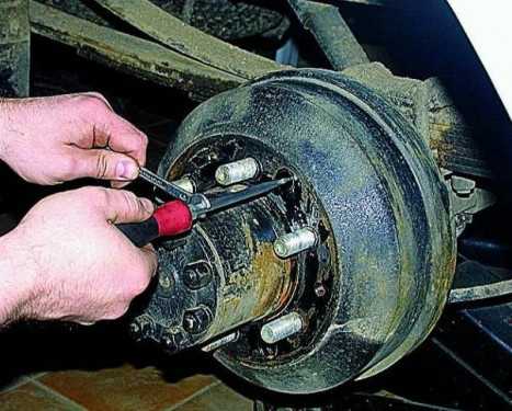 ΠΠ»Ρ ΡΠΎΠ³ΠΎ, ΡΡΠΎΠ±Ρ Π·Π°ΠΌΠ΅Π½Π° ΡΠΎΡΠΌΠΎΠ·Π½ΡΡ ΠΊΠΎΠ»ΠΎΠ΄ΠΎΠΊ, Π·Π°Π΄Π½ΠΈΡ Π±Π°ΡΠ°Π±Π°Π½ΠΎΠ² ΠΈ ΠΊΠΎΠ»ΠΎΠ΄ΠΎΠΊ ΠΏΡΠΎΡΠ»Π° Π±Π΅Π· ΠΎΡΠΎΠ±ΡΡ Π½Π΅ΠΏΡΠΈΡΡΠ½ΠΎΡΡΠ΅ΠΉ, ΠΏΠΎΠ΄Π½ΠΈΠΌΠ°Π΅ΠΌ Π½Π° Π΄ΠΎΠΌΠΊΡΠ°ΡΠ΅ ΡΡ ΡΡΠΎΡΠΎΠ½Ρ Π°Π²ΡΠΎΠΌΠΎΠ±ΠΈΠ»Ρ, Ρ ΠΊΠΎΡΠΎΡΠΎΠΉ Π±ΡΠ΄Π΅ΠΌ ΡΠ°Π±ΠΎΡΠ°ΡΡ, Π»ΠΈΠ±ΠΎ ΠΏΠΎΠ΄Π½ΠΈΠΌΠ°Π΅ΠΌ Π°Π²ΡΠΎ Π½Π° ΠΏΠΎΠ΄ΡΠ΅ΠΌΠ½ΠΈΠΊΠ΅. Π‘Π½ΠΈΠΌΠ°Π΅ΠΌ ΠΊΠΎΠ»Π΅ΡΠΎ. Π‘Π½Π°ΡΠ°Π»Π° Π²ΡΠΏΠΎΠ»Π½ΡΠ΅ΡΡΡ ΡΠ½ΡΡΠΈΠ΅ Π±Π°ΡΠ°Π±Π°Π½Π°:Β Π²ΡΠΊΡΡΡΠΈΠ²Π°Π΅ΠΌ Π΄Π»ΠΈΠ½Π½ΠΎΠΉ Π³ΠΎΠ»ΠΎΠ²ΠΊΠΎΠΉΒ ΠΈΠ»ΠΈ ΠΊΠ»ΡΡΠΎΠΌ β7 Π½Π°ΠΏΡΠ°Π²Π»ΡΡΡΠΈΠ΅ ΡΠΎΡΠΌΠΎΠ·Π½ΠΎΠ³ΠΎ Π±Π°ΡΠ°Π±Π°Π½Π°Β ΠΈ ΠΌΠΎΠ»ΠΎΡΠΊΠΎΠΌ ΡΠ±ΠΈΠ²Π°Π΅ΠΌ Π΅Π³ΠΎ.